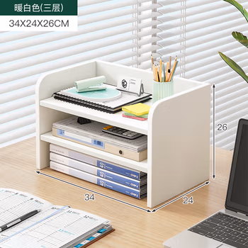 蔓斯菲尔(MSFE)办公室桌面书架置物架多层文件架工位桌上整理架宿舍收纳架档 暖白色34X24X26CM三层 分类储物 甄选板材 收藏 - 暖白色34X24X26CM三层