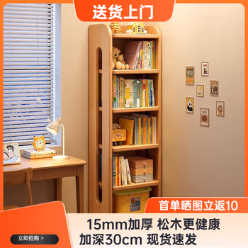 蔓斯菲尔(MSFE) 全实木儿童书架落地简约家用学生客厅置物多层架子简易靠墙书柜 【15MM松木六层-推荐】43*30*160 收藏 - 【15MM松木六层-推荐】43*30*160
