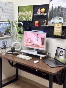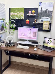 格***雅用了几天了 使用感超好 一套摆起来很好看 怎么搭配都不出错 爱死了,这桌子好结实稳固,没有异味,搭配的洞洞板也好方便,可以容纳很多东西,桌板很厚实,尺寸也刚刚好,爱了爱了