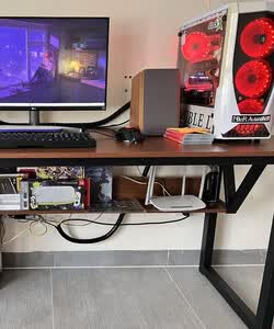 l***a电脑桌质量挺好的,没有一丁点气味。材料齐全,安装起来很简单,结构挺稳的,装好之后颜值很高,板材厚实,钢架用料扎实,是那种很厚实的钢材。