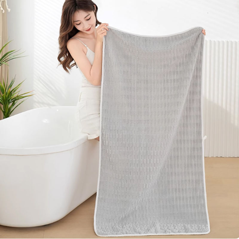 140×70cm 的大尺寸,男生裹到胸口不往下滑,女生裹着能盖住膝盖,连小朋友裹着都像裹了件小被子,不会露着胳膊腿受凉。洗完澡裹着它坐在沙发上吹头发、敷面膜,暖乎乎的安全感,比普通小浴巾舒服太多。