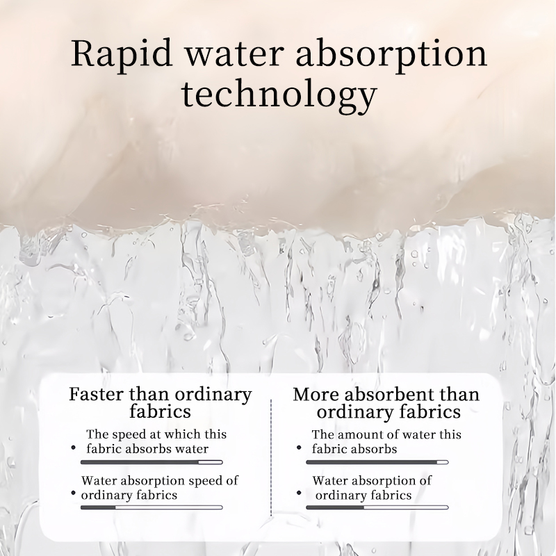 洗完澡裹上它的第一秒,就能明显感觉到水分在被 “快速吸走”—— 不像普通浴巾要反复擦好几遍,它只要轻轻裹住身体按压几下,胳膊、腿上的水珠就被吸得干干净净,连头发擦半分钟,就能从滴水变成不滴水的半干状态。