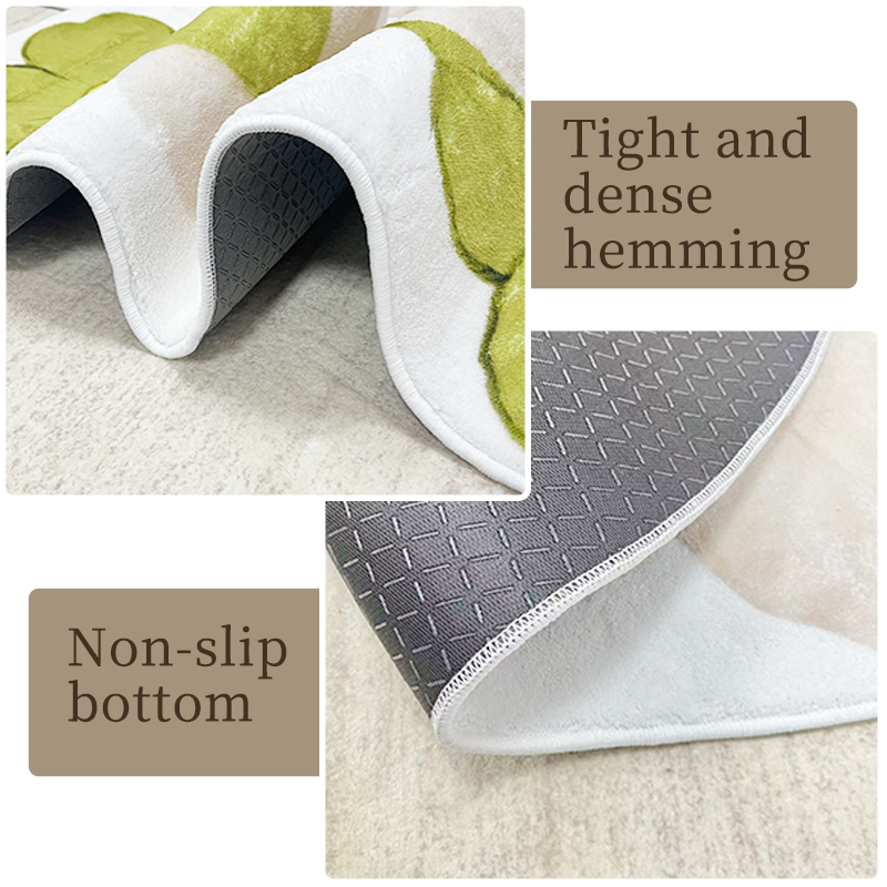 而且地毯背面做了防滑设计,布满了细小的橡胶颗粒,铺在地板上、瓷砖上都不会打滑,就算孩子在上面跑跳,地毯也能稳稳贴在地面,不用担心移位、卷边,安全性满分。