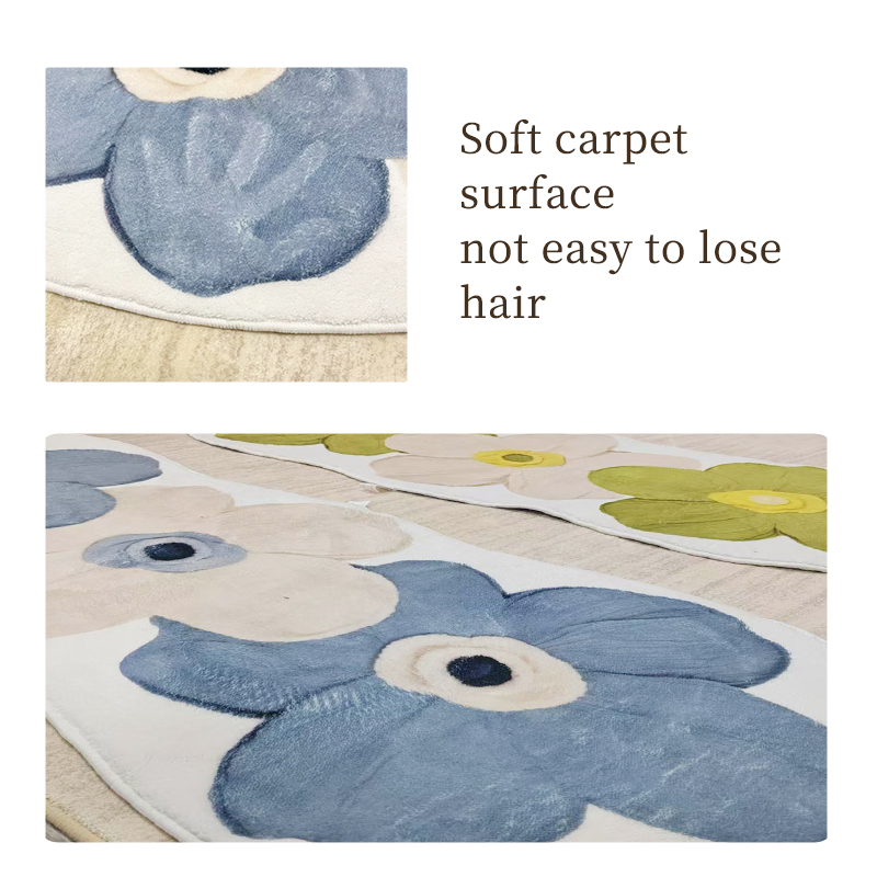 虽然是绒面材质,但它特别透气,夏天踩在上面不会觉得闷脚,冬天又能保暖,四季都能用。不像有些地毯夏天用着闷热,冬天又不保暖,这款小花地毯能承包家里一整年的柔软。