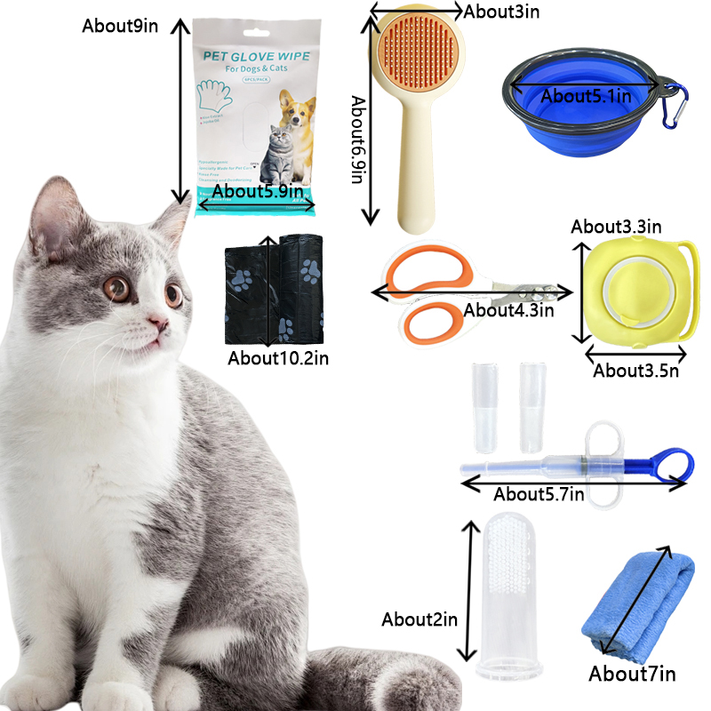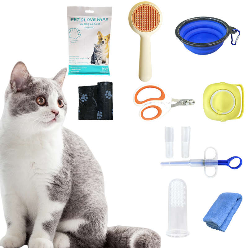 猫咪清洁套装 猫梳子 宠物湿巾 指甲剪等用品除毛梳毛护毛一体 猫咪日常护理必备